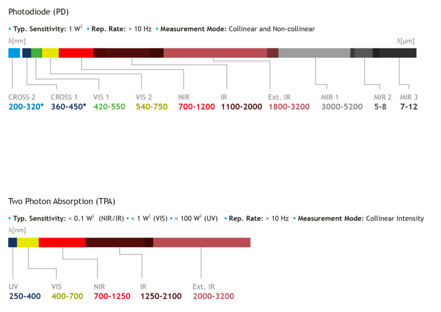 *測(cè)量的靈敏度包括光學(xué)組,定義為入射脈沖的平均功率乘以峰值功率 PAV * Ppeak