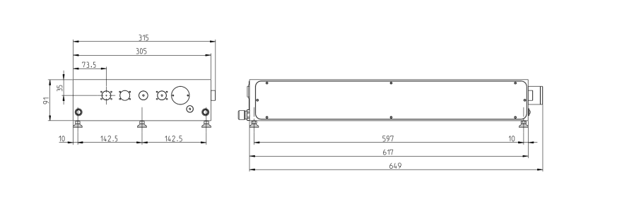 激光頭尺寸:619 x 305 x 91, 電源尺寸:19” 4RU, 水冷:19” 3RU |