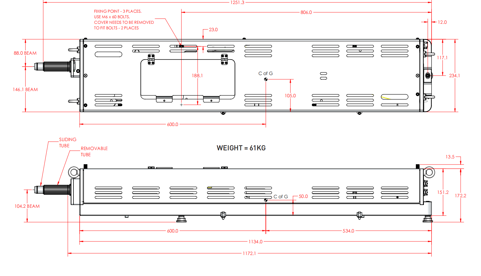 1146 x 234 x 153 毫米(長 x 寬 x 高) |