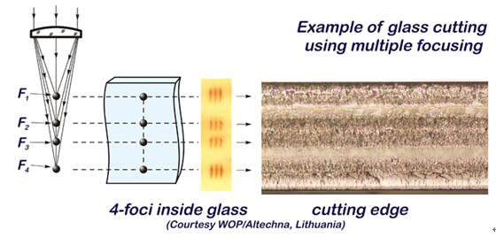 具有專利設(shè)計(jì)的能產(chǎn)生多焦點(diǎn)的物鏡。foXXus物鏡可以通過一個(gè)準(zhǔn)無焦點(diǎn)系統(tǒng)在一個(gè)焦平面產(chǎn)生多個(gè)焦點(diǎn)。其中0-0.21表示在空氣中的DF(mm),q代表準(zhǔn)無焦點(diǎn)的。材料內(nèi)部裂紋通常比光學(xué)設(shè)計(jì)中定義的DF更長(zhǎng)。