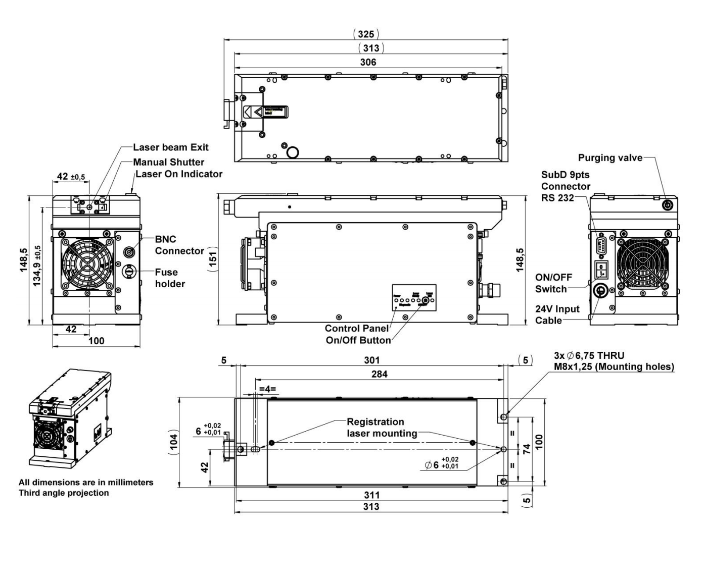 (1)見選項 p3 (2)溫度變化 <±3°C 和 <3°C/小時 (3)平均平均值 M = √(XY),X 和 Y 分別為橢圓的長軸和短軸 (4)光束橢圓度計算為主軸遠(yuǎn)場發(fā)散的比率。 (5)光束在水平(高斯)和垂直(遠(yuǎn)場中的(sin x /x)2)平面上表現(xiàn)出不同的輪廓 (6)聯(lián)系工廠了解可用性 (7)可根據(jù)要求提供更緊湊的分離式租賃頭和電子組件 – 聯(lián)系工廠了解更多詳情 (8)短期能量穩(wěn)定性(1000 脈沖,RMS) (9)長期(4 小時)平均能量漂移 |