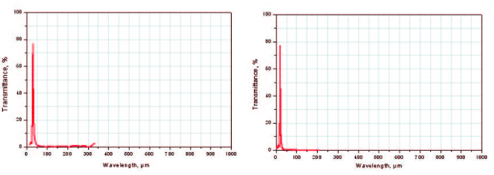 THZ帶通濾波片可以使20到3000μm之間波長范圍的電磁波通過。這些濾波片其實(shí)是帶小孔的金屬薄膜,孔的結(jié)構(gòu)取決于波長范圍。這種濾波片解決了接近光波波段的THZ波的傳輸問題。這樣也可以在大的通光口徑下獲得更高純度的THZ波。建議使用帶通濾波片獲得高光譜分辨率以及小的外觀尺寸和重量。